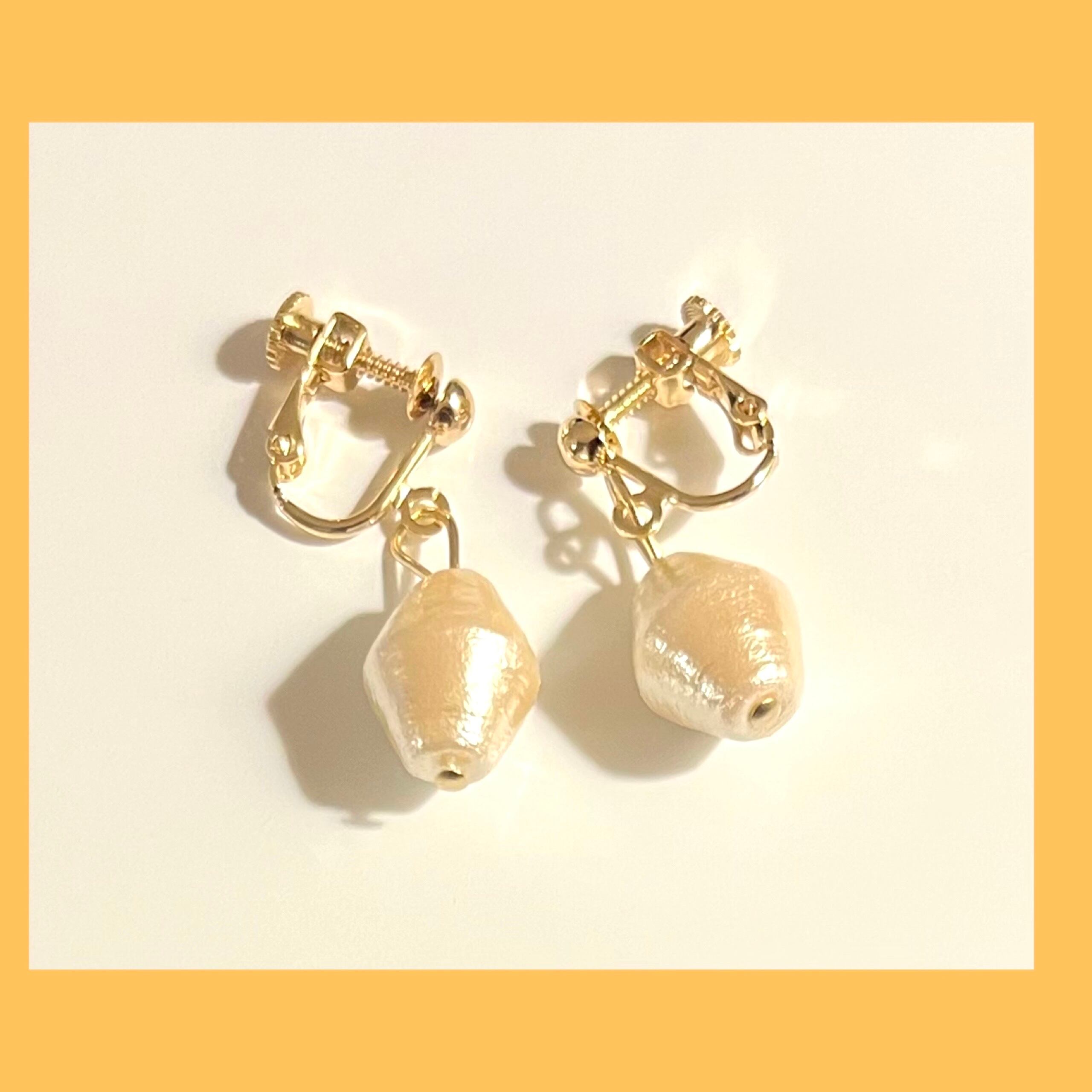 ■ コットンパール コマ型イヤリング