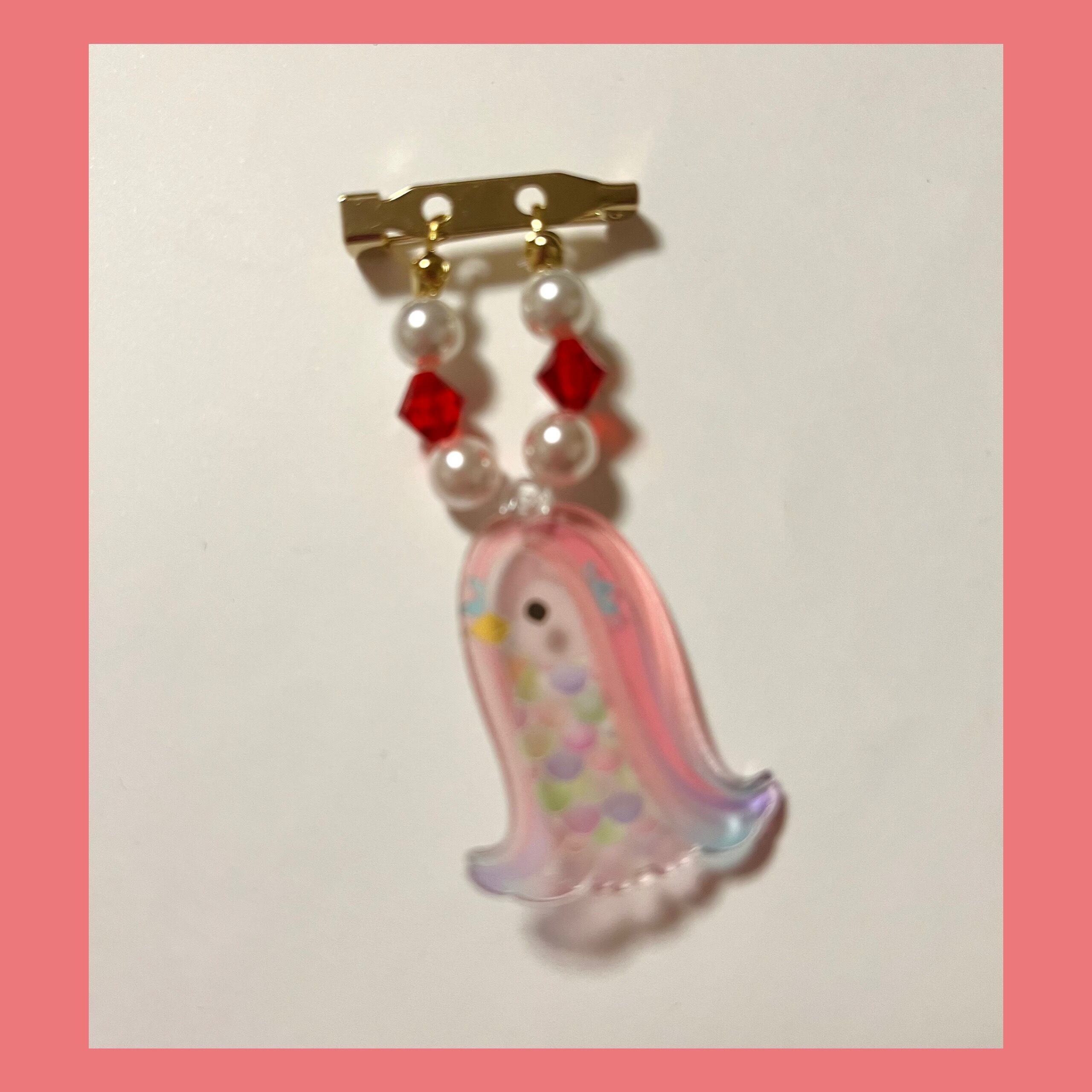 樹脂パール白色とビーズ赤色や、アマビエパーツの組み合わせ。