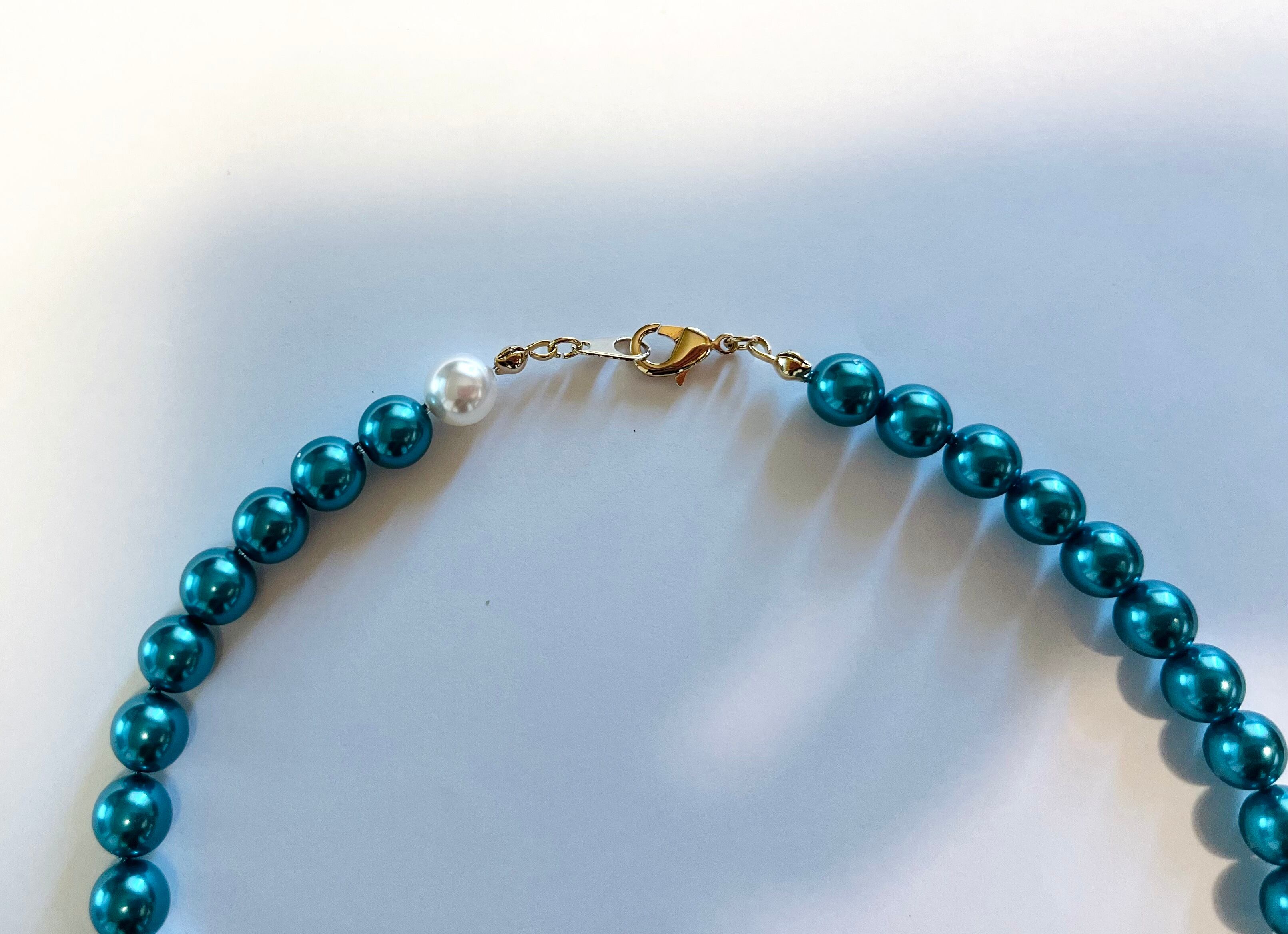 モノトーンの色合いに映える、ネックレスを意識して作りました。幅広い年代の方々に、ファッションを楽しんで頂けるデザイン。