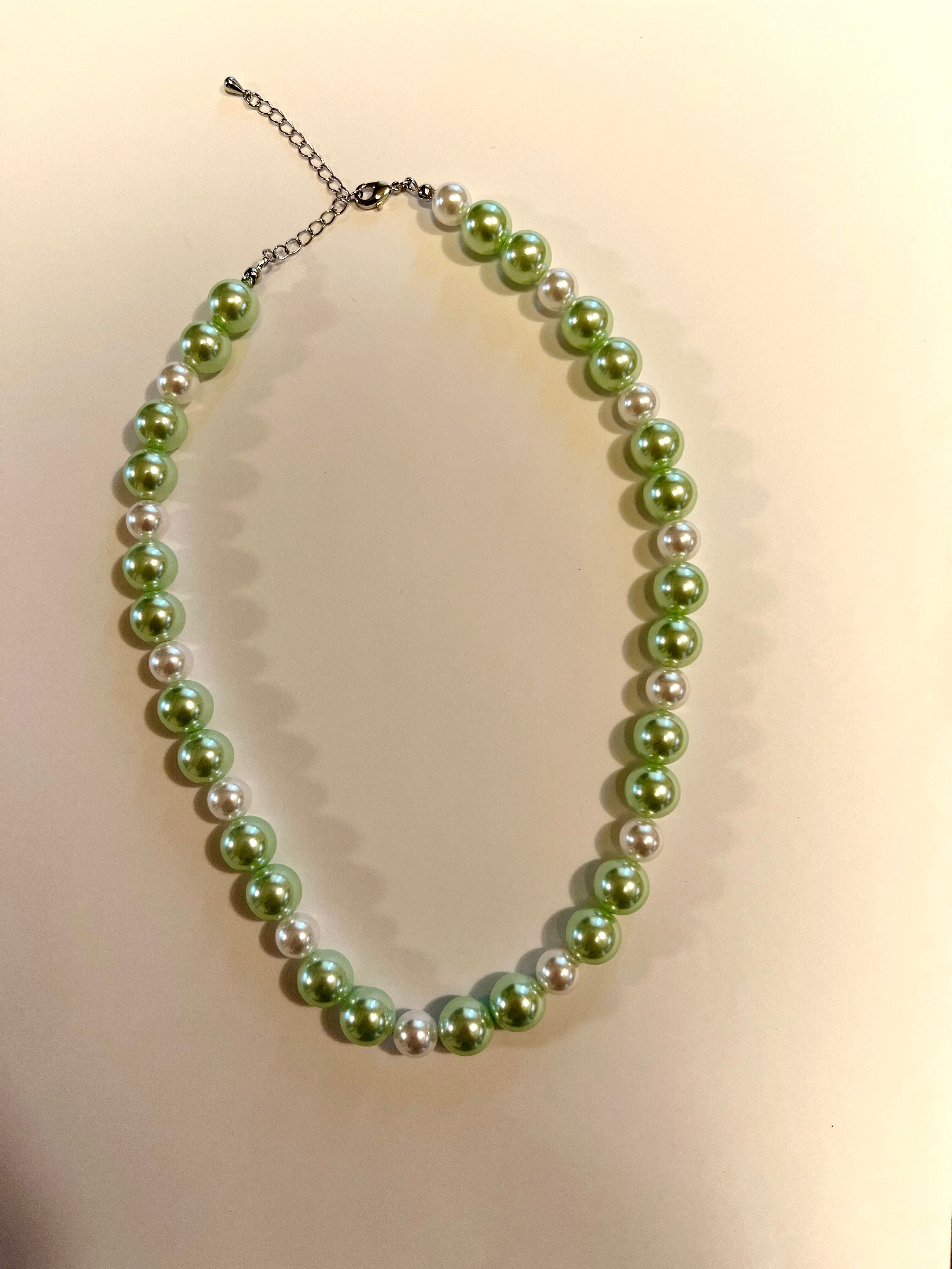 素材 樹脂パール エメラルドグリーン 10mm 26粒、白色 8mm 13粒