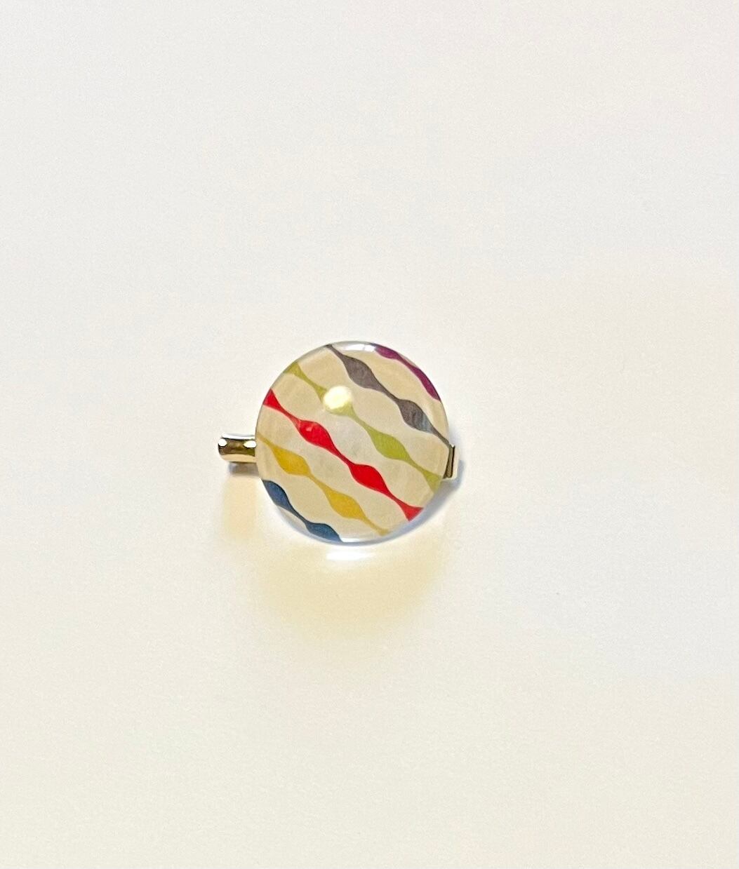 アクリルカボションの和柄ブローチです。 直径20mmで、ゴールドの金具使用。 カットソーやジャケットに、一つあったら便利というコンセプトでパーツを組み合わせて作りました。